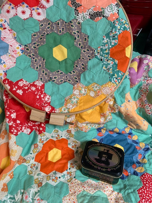 3. Finish hand piecing the Liberty hexie pieces.