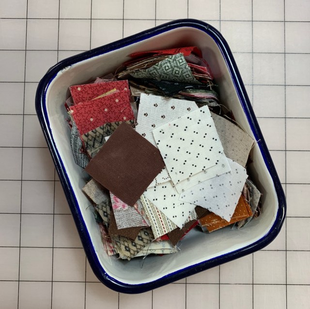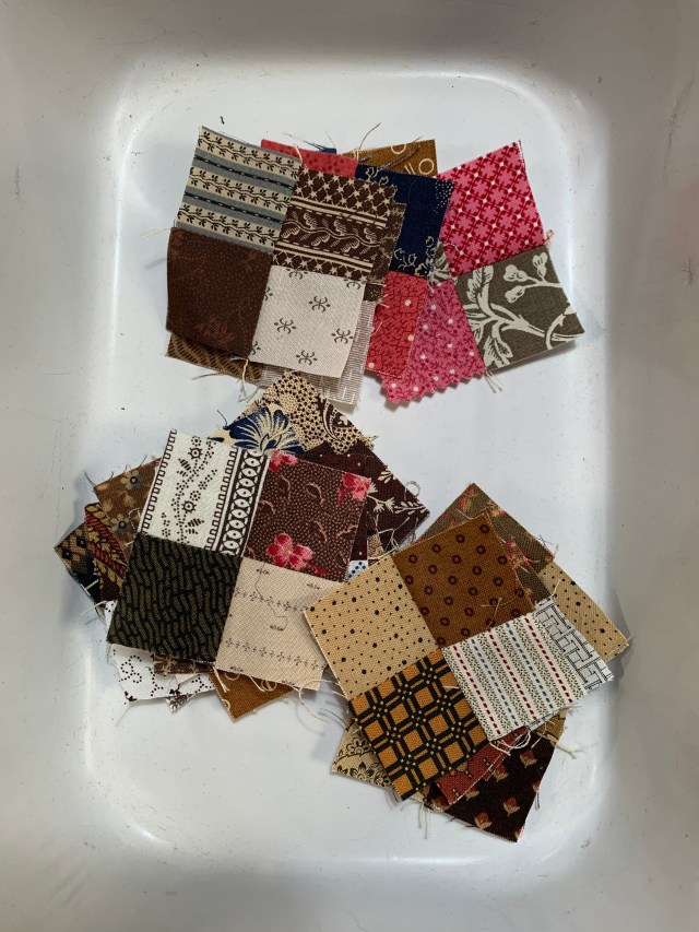 I decided to move ahead to part 2. Again, I grabbed my bin of 2 1/2 inch squares and picked out all the browns I needed.