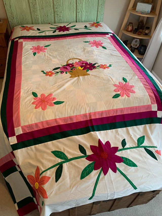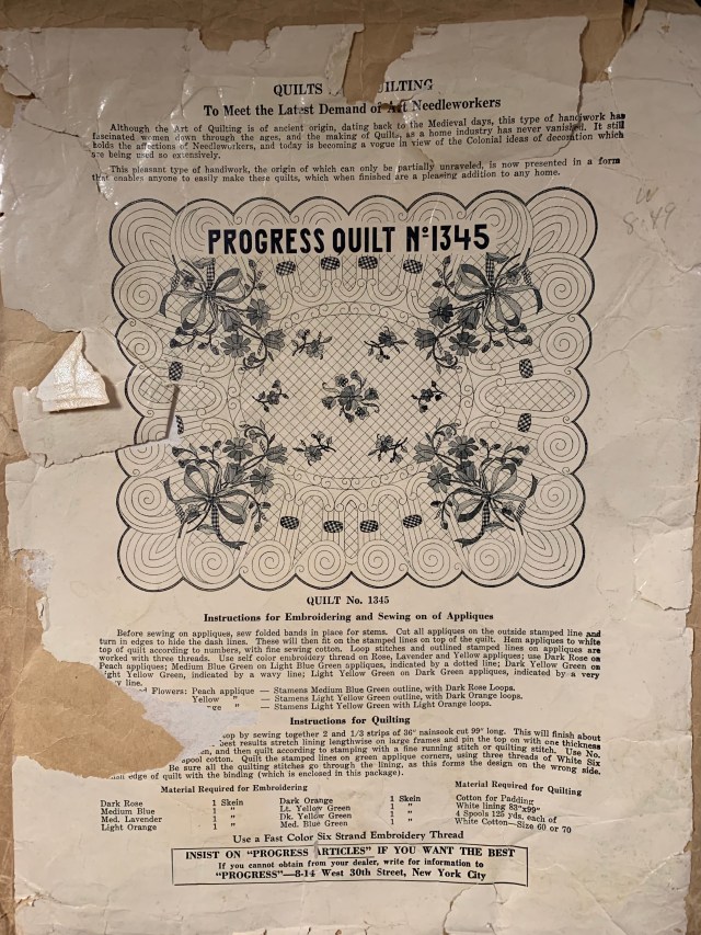 7. Have I ever mentioned that applique is not really my thing? Yeah, I’ll never complete this. It is a vintage quilt kit it is complete and never started. There are some age related discolorations. You can see that in the photos. Finished size s 81 by 99 inches. $150 plus shipping. Sold!