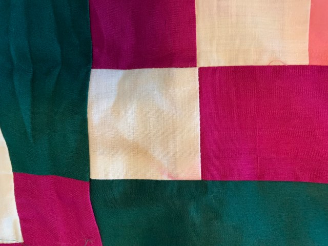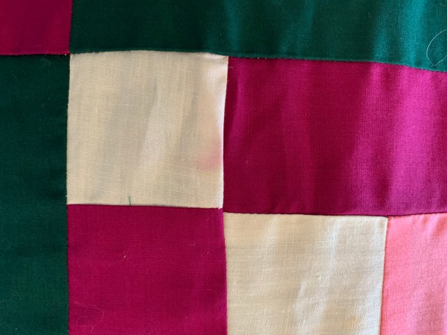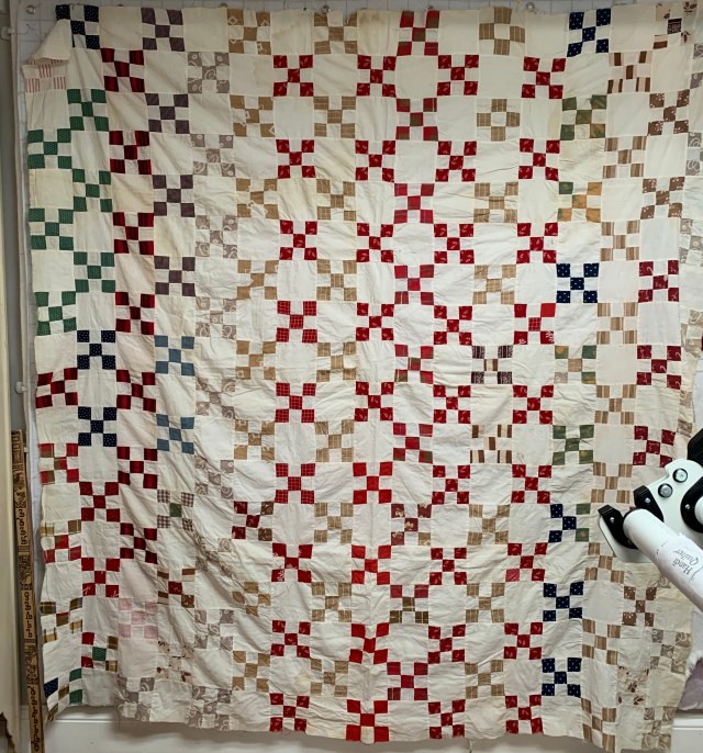 5. Sold Vintage 9 Patch quilt top. I love this top! It is in need of some repairs, but overall, it is a nice piece. I had planned to make it a slightly smaller quilt and replace some of the worst blocks with some of the better ones. It measures 69 by 73 inches. A few of the red fabrics have bled. I think it is a piece worth putting a bit of work into. I would estimate this dates from 1900-1920. $35 plus shipping.