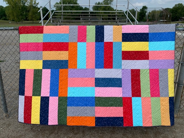 I love this–and I thought it was a mini at first, too. But what a great quilt when you need something big without a lot of time to get it made (nothing this large is ever “quick” but some are less involved than others, and this looks less involved). Thanks for the link to the pattern. I tried the second link and it said “Page Not Found”.