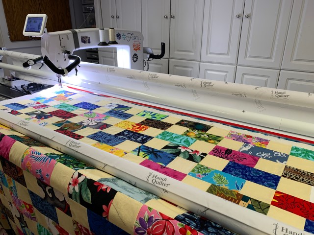 The piecing went along really well. Now it’s on the frame. This is the panto I’m using. It’s from Urban Elementz .