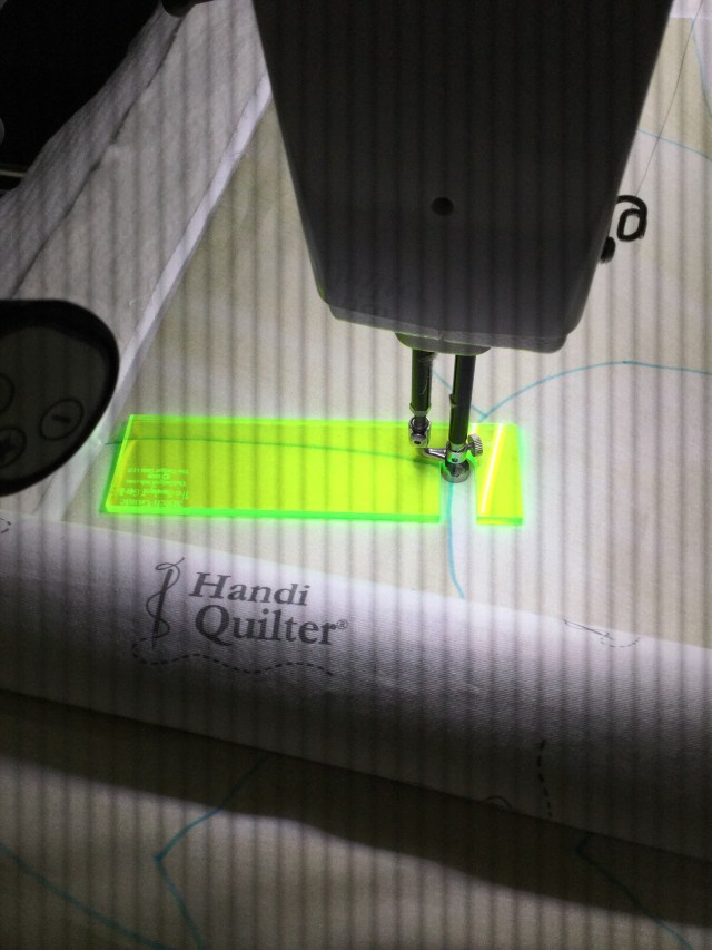 Ila, a very sweet bloggy friend, sent me this nifty long arm tool that was a huge help in following the lines.