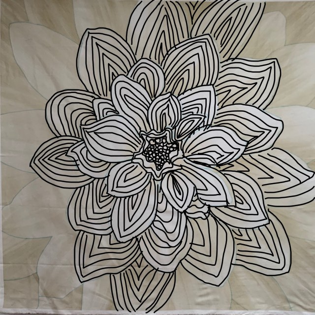I thought about doing feathers, but I’ve already done that. I’ve been putting this off afraid I would ruin it. But that’s just silly. It’s only fabric! So I came up with a plan. I use an app called Doodle for this.