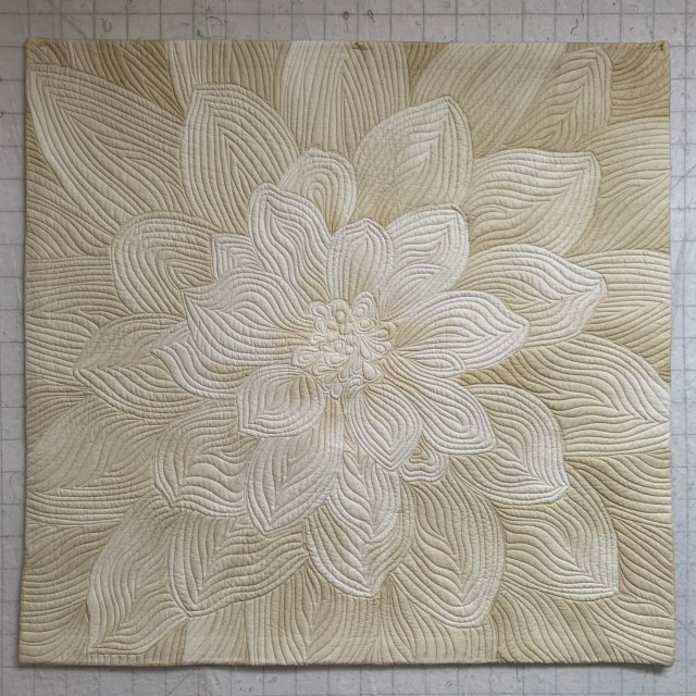 Wow! I’m always amazed how quilting takes these flower panels to new levels, and yours didn’t disappoint. Facing was a good call; this will look wonderful in your new home.