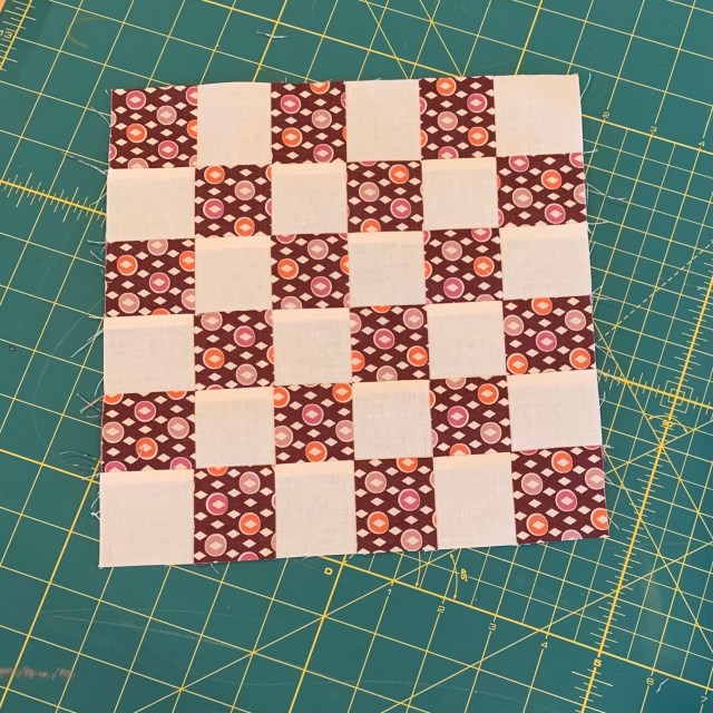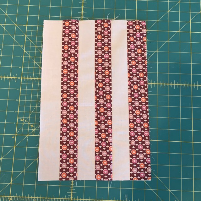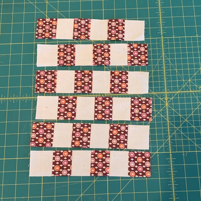 I think when they are done, I will set them with alternate plain blocks. I love making these. So simple. My strips are cut 2 inches wide. I sew a print and backgrounds strip together and then cut them into thirds.