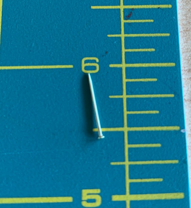 They are about a half inch long. Because they are brass, they don’t rust with humidity. Since they are tiny, they don’t leave big holes in the walls. I believe I got these at Michael’s.