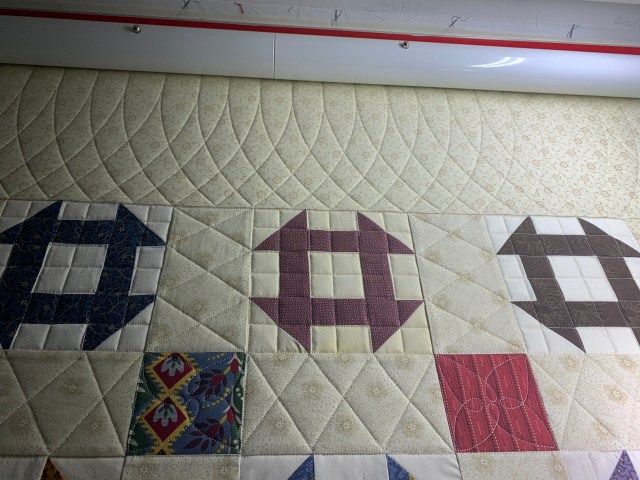 I tried many different ideas for the blocks and ended up with a crosshatch. Nearly everything is rulerwork, except for the cornerstones. It’s slow going, but beginning is half done!
