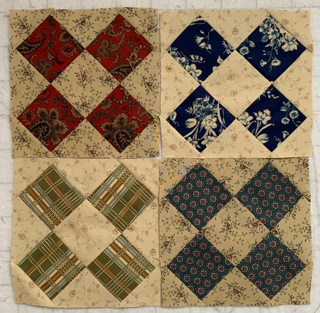 I’m keeping a block by the sewing machine so I can stitch a block here and there between other things. I only have nine cut out. When I get these done, I’ll decide if I want to make more.
