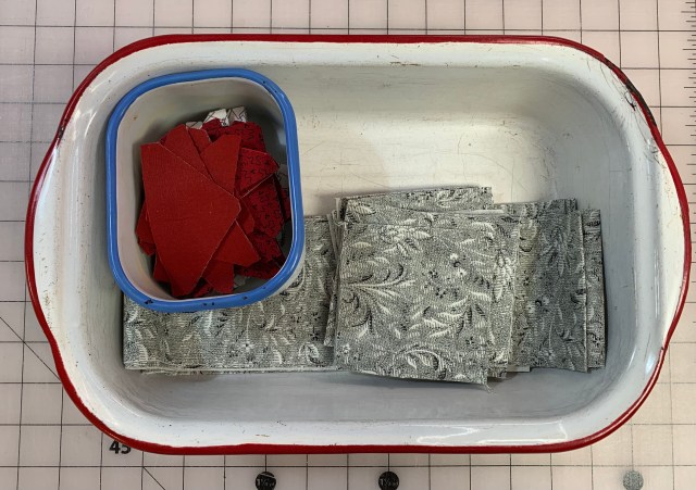 I wanted to start something new, so I turned to Pinterest and revisited the many things I’ve pinned. I found a lovely little antique doll quilt and decided to reproduce it. Here are my pieces.
