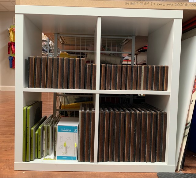 I store most of my Accuquilt dies in this shelf unit from Ikea.