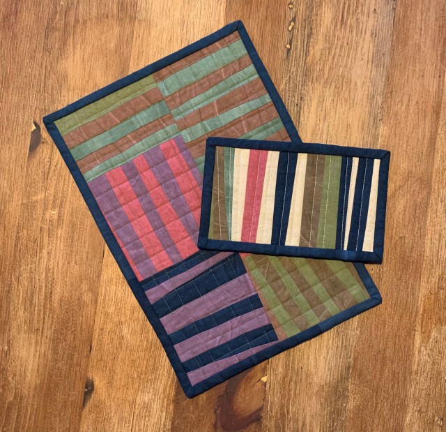 Like the colors of your fabrics. Aren’t they satisfying little makes? I love to do straight line quilting!