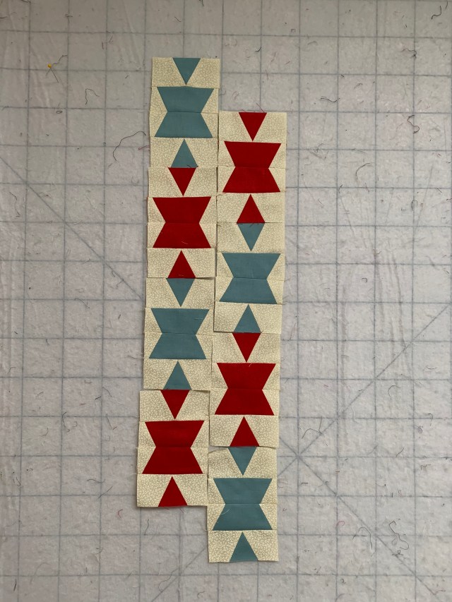 The fabrics were scraps left on the cutting table when I first got my crazy idea, so this may not go any farther than this. But it’s definitely an idea that I will revisit. I love finding new ways to use my Accuquilt dies.