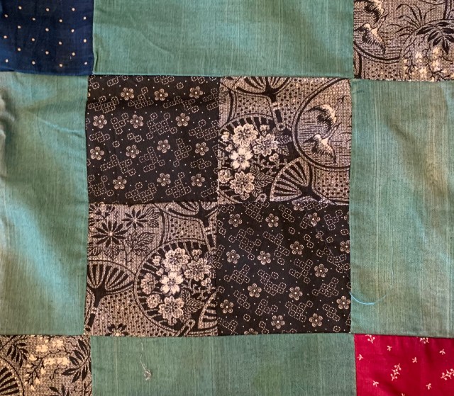 I love that funky green in the plain squares…so neat–beautiful find…hugs, Julierose