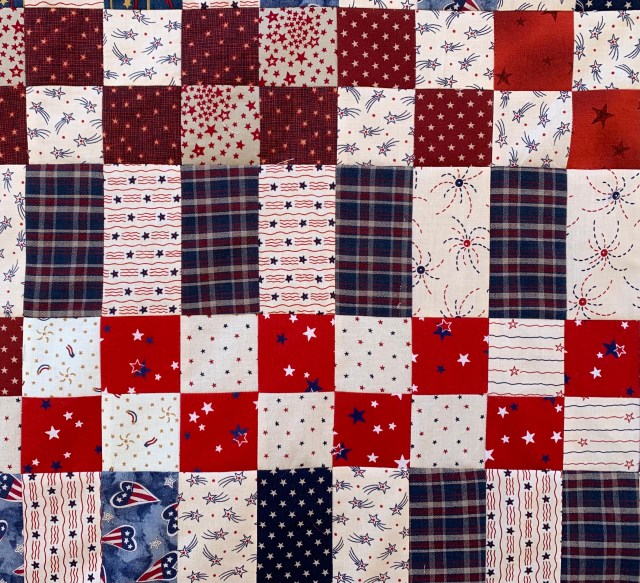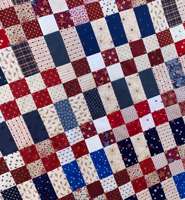 Each square finishes at 2 inches and each rectangle finishes at 2 by 4 inches. My top finished at 60 by 80 inches.