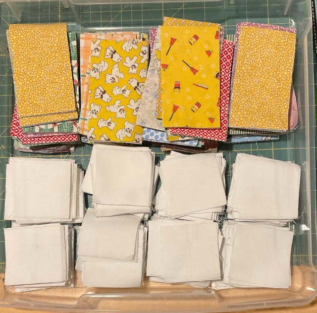 I cut these pieces out ages ago. I started adding the white pieces as leaders/enders