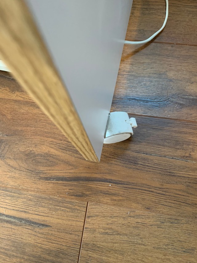 5. Lastly, and perhaps most importantly, lock the wheels on your machine cabinet. Go ahead and laugh. Yes, I skated all over my floor until I realized I could do this.