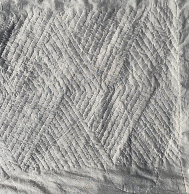 I have four of sixteen rows done! It’s amazing what a difference quilting makes.