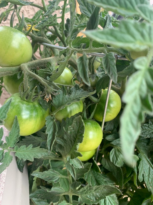 Look at those tomatoes! This plant is going back too. Every year the hubs and Daughter #1 have a contest to see who gets the first ripe tomato. I think he’s got it in the bag this year.