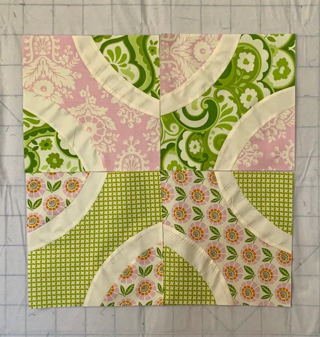Better, not good. My improv curves were smoother. I’m going to go watch videos on this and try again another day. Or I could cut my losses and use the rest of these fabrics for a different project altogether.
