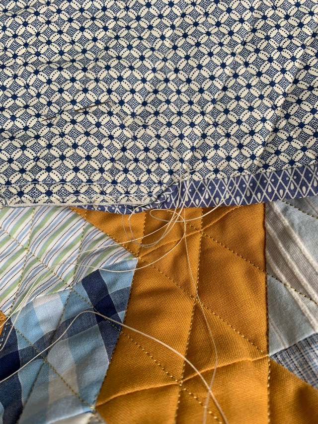 Time to finish that binding. I love my backing choice and the binding choice, but just realized I don’t love the two together.