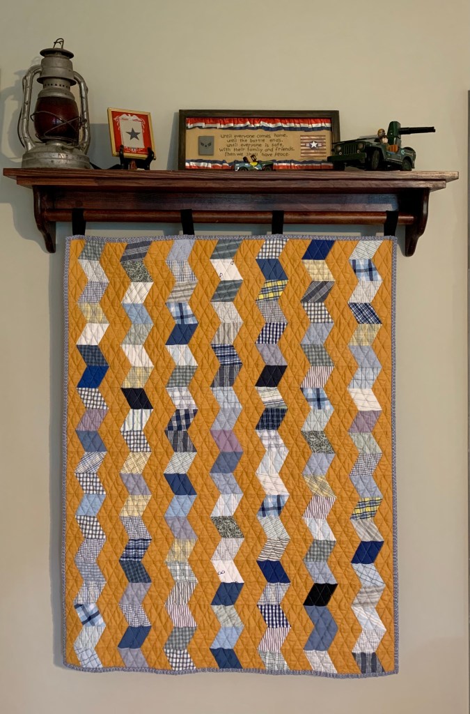 First off, I have been asked about the pattern for this QOV. I don’t have one! I just used four patches made from 2 1/2” squares and 2 1/2 by 4 1/2 inch rectangles. You can read more about the making of this top here and here. I’m more than happy for anyone to copy this quilt for personal use!