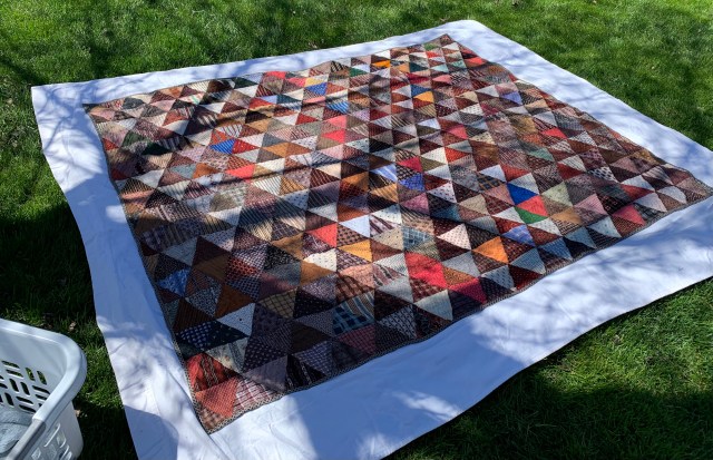 Here’s a good before and after. The first photo was taken just after I purchased this as a tied quilt.