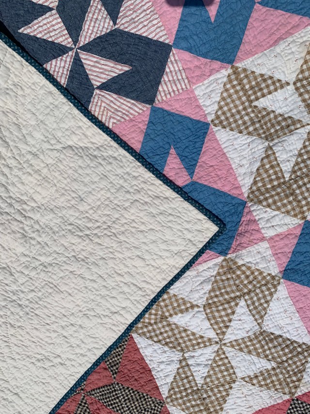 Plain muslin for the backing and a vintage cadet blue for the binding.