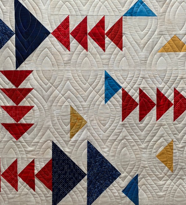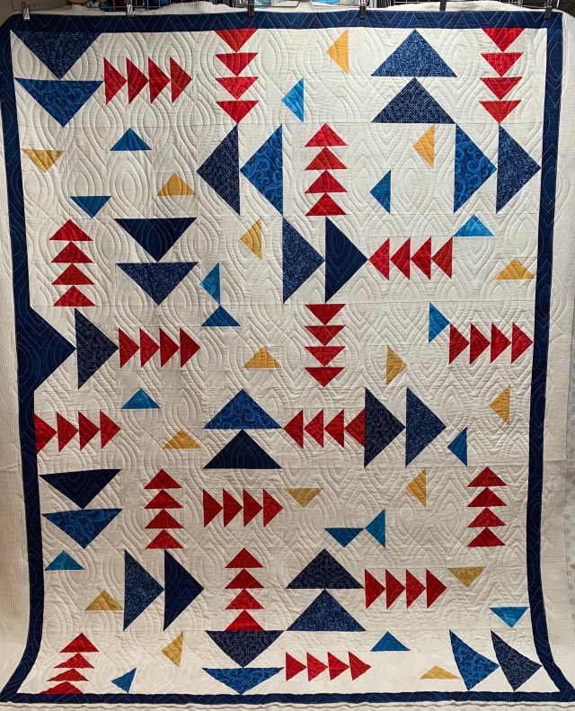 Thank you for quilting our QOVs! They always look so much better when you’re done with them. The first quilt shown was adapted from one in a book titled ‘Love Flying Geese’.