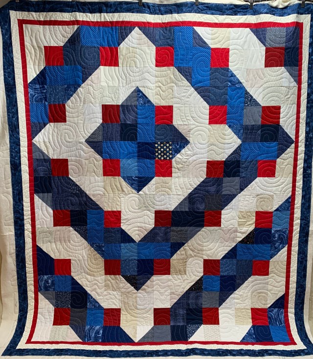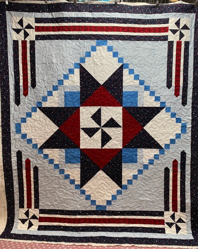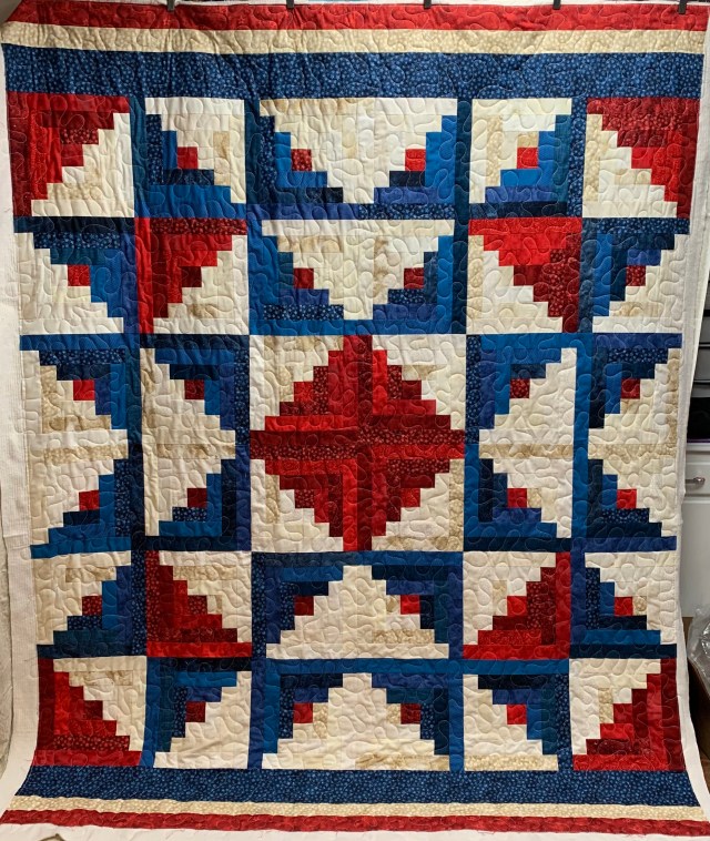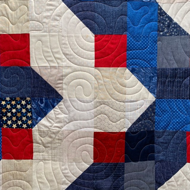 I’m finally back to quilting Quilts of Valor! I picked up a batch of tops from the Stitching Sisters group. I’m only quilting the tops. I do not have any pattern info. Enjoy!