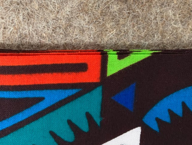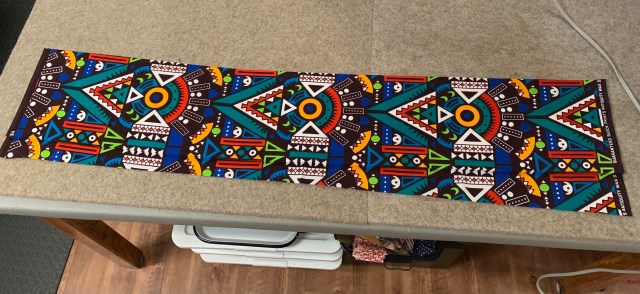 Then I layered them up on the ironing board.I didn’t straighten the strip on the bottom so that’s why it looks wider at one end in the photo.