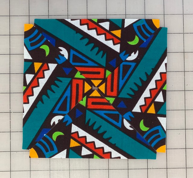Now comes the fun part. Look what happens when I take four identical pieces to make an hourglass block!