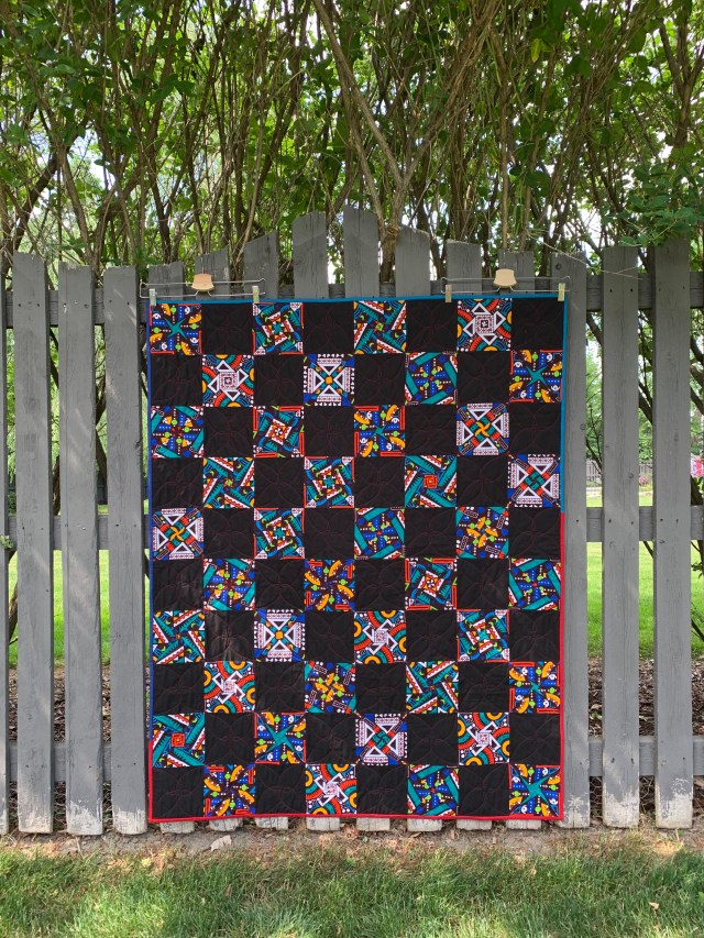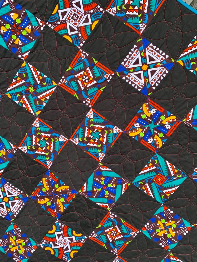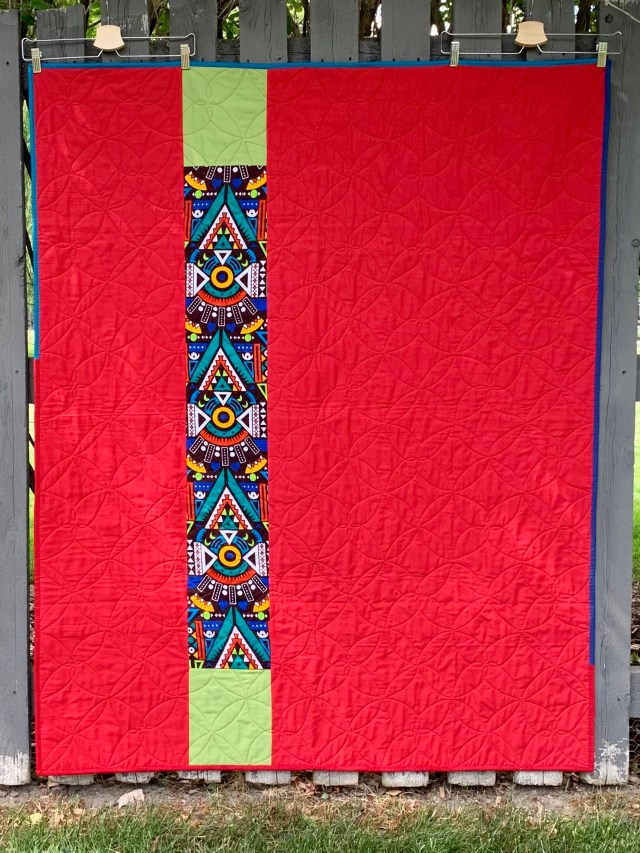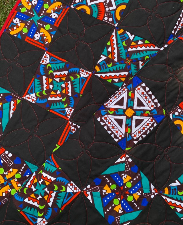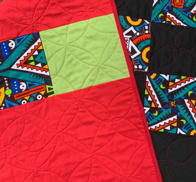 I love the red thread on black, but I kept the quilting very simple to keep the focus on the fabric.