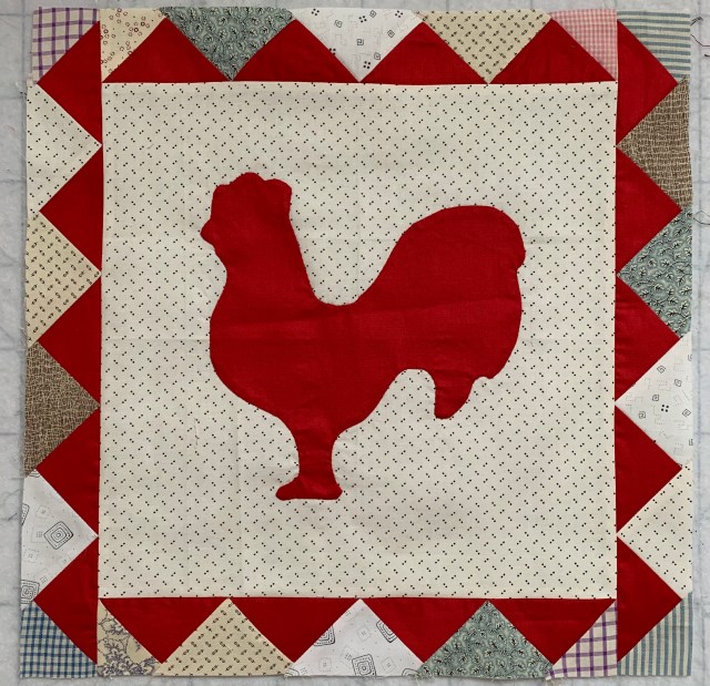 You didn’t make math errors, you just added to the charm of your quilt! I love the rooster, when your done you could add a little embroidery to help define him. It’s going to be wonderful. Hugs,