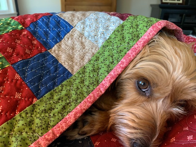 Gorgeous finish… love that hand quilting texture! And the photo with Winslow is so adorable!