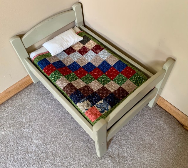 Can’t help but love it, Katy. It’s so adorable. The green border and pink binding really make it pop. It’s too bad they’re mostly hidden on the bed.