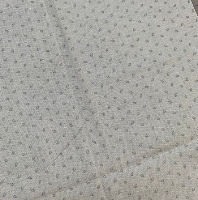 Barbara is hosting this BOM over on her blog, Civil War Quilts. You can find info about the BOM here. I will use the back basting method of hand applique. Can you see that I traced the pattern on the back of my block?