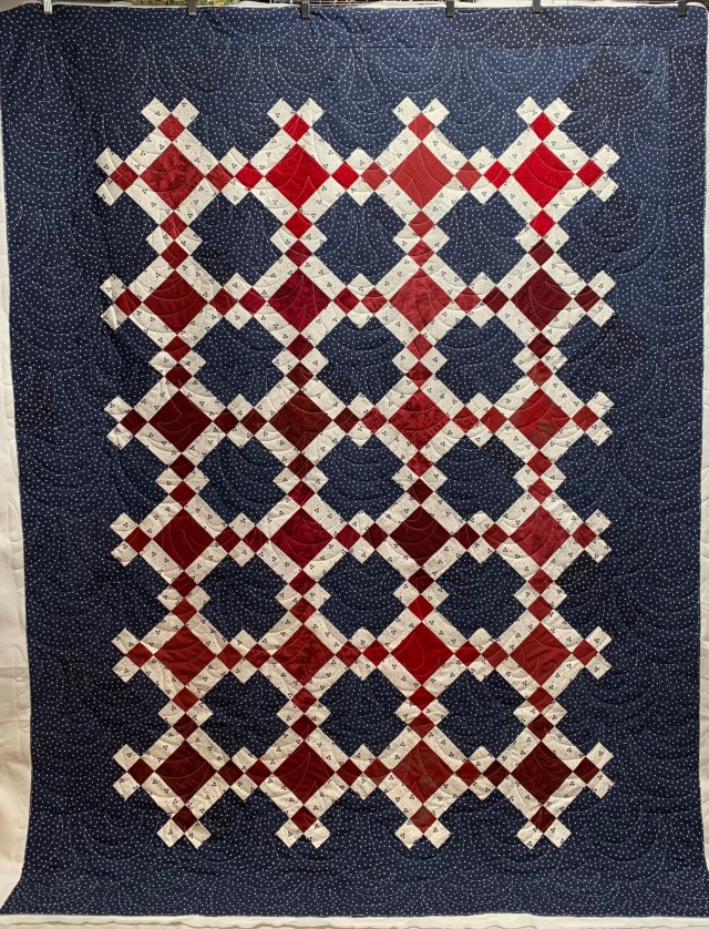 It’s QOV week again! No pattern info on the first two quilts. The panto I used for the first one is called Scalloped Grass. Turn it upside down and I think it looks like bunting!