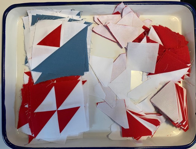 I love what you are doing with the triangles! I have many among my leader and ender sewing because I make so many flying geese, hence bonus triangles. Someday I’ll deal with them.