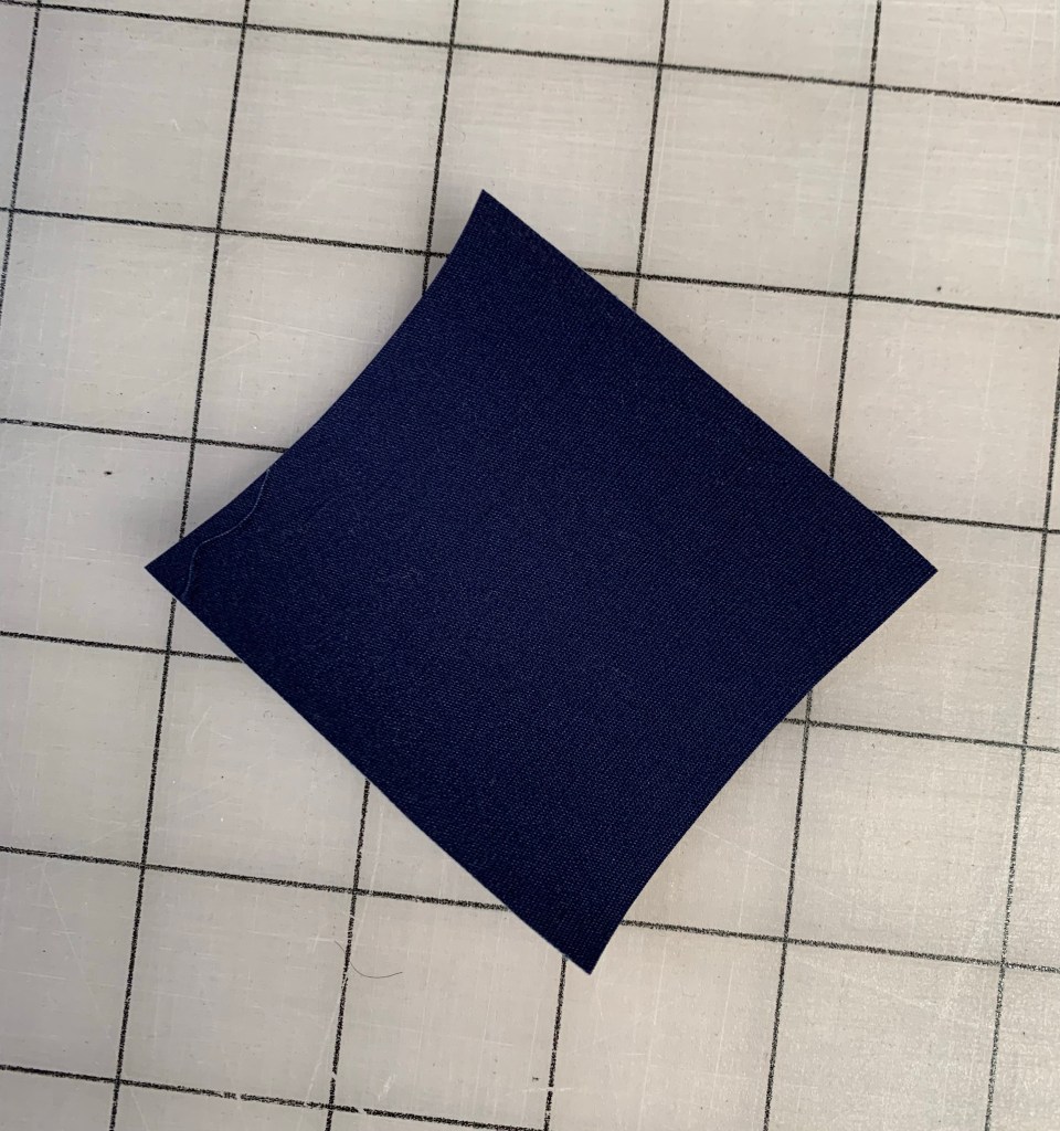 I grabbed a solid navy and put some Heat N Bond Lite on the back. Then I cut it into 2 1/2 inch squares. My letters finish at 2 inches.