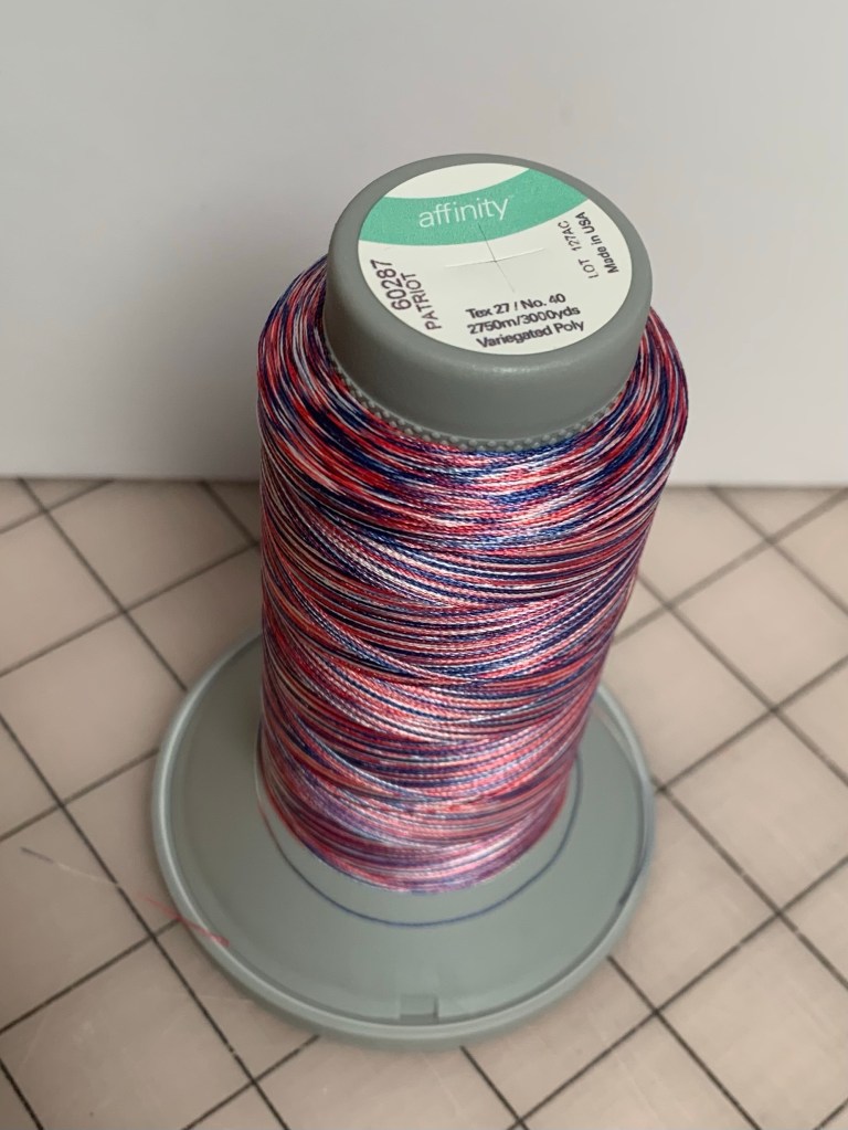 I originally wanted a print background, but I couldn’t find anything in my stash that I was happy with. Then I remembered I had this variegated thread.