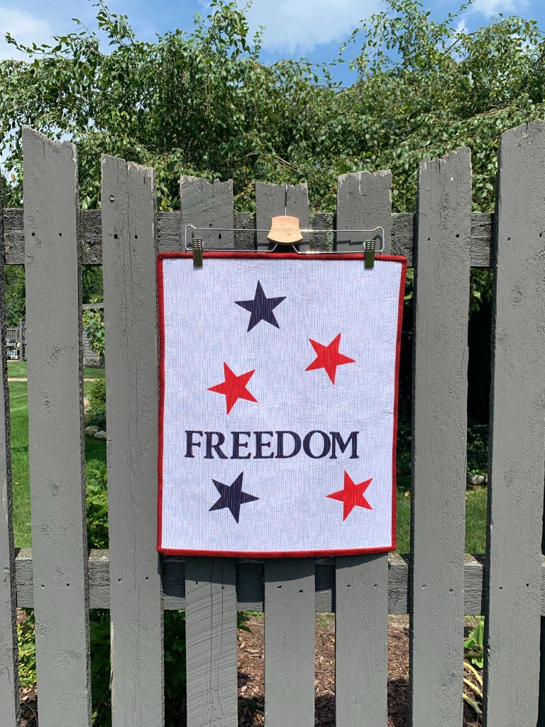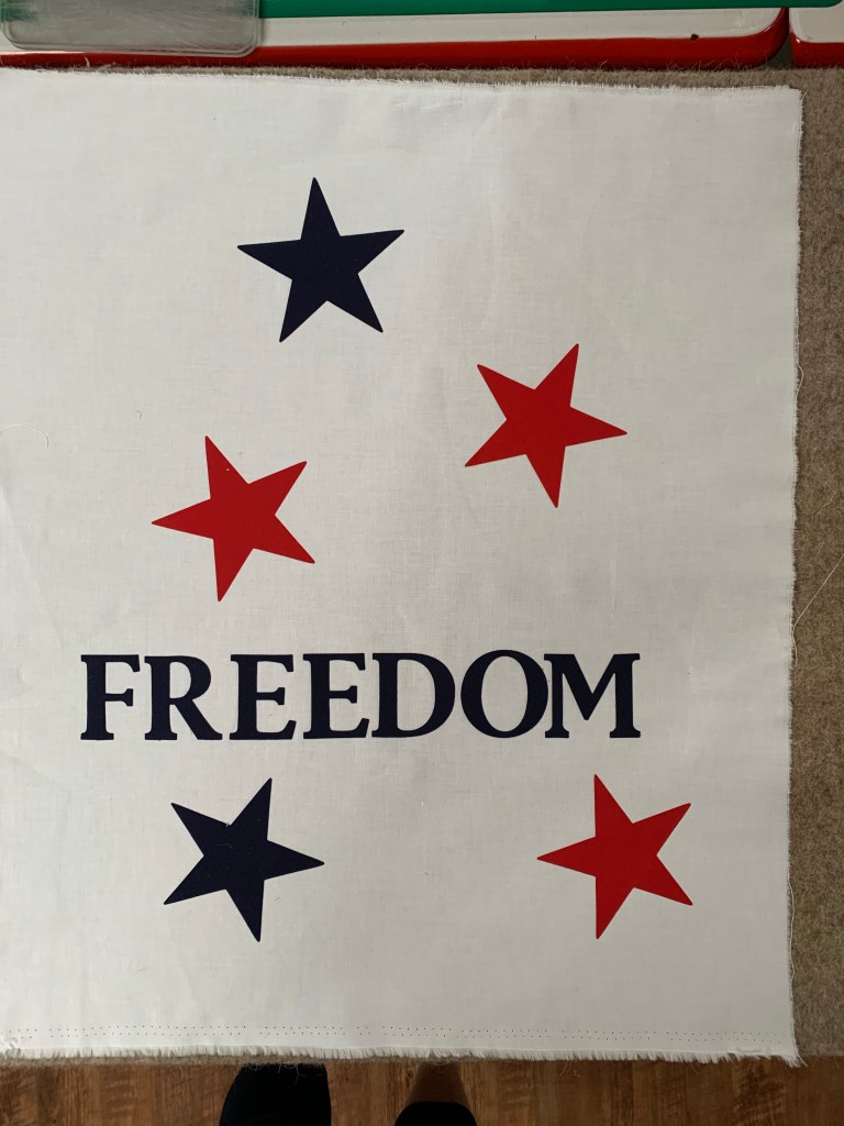 I decided to use that to break up the white background. I used this American flag print for the backing.