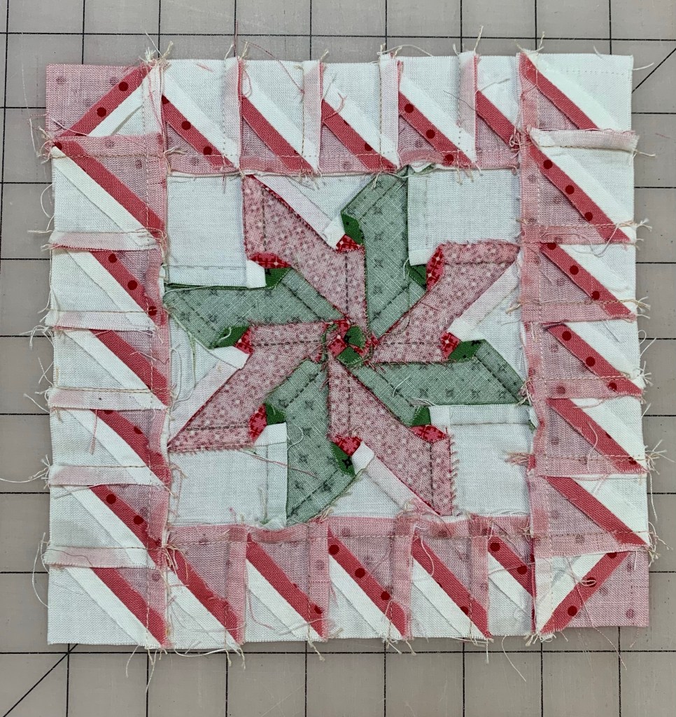 And I’m p,eased with how my little five inch star turned out. I cut the squares and triangles with my Accuquilt cutter.