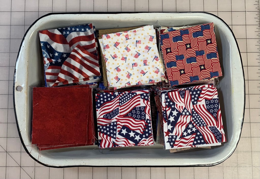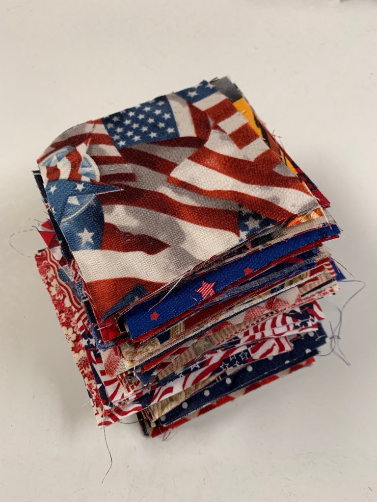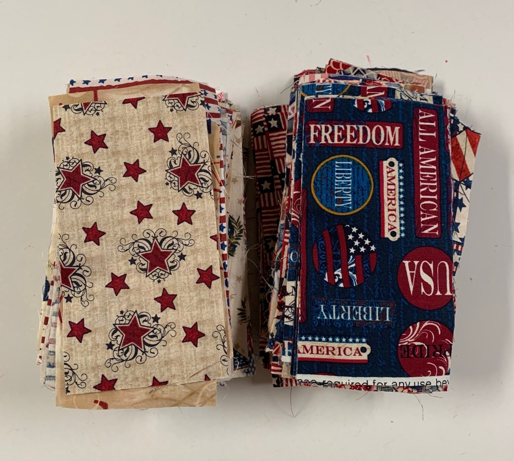 You may notice in the quilt above, that I used red squares and neutral squares. My rectangles are all blues and neutrals. For the one I’m making for the QAL, I’m sticking with red, blue and neutrals, but I’m cutting squares and rectangles out of each.