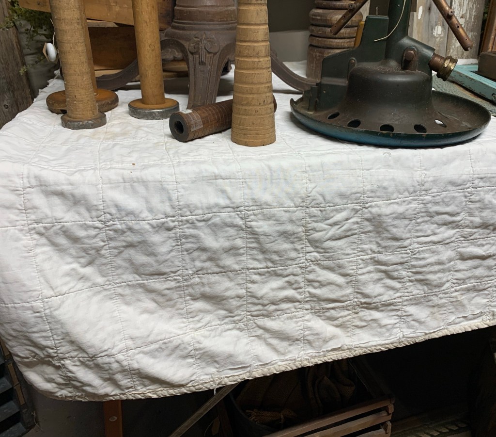 Mr. Wonderful and I went wandering through an antique mall last weekend. I didn’t buy anything, but it’s always fun to look. Here are the quilts and things that caught my eye.