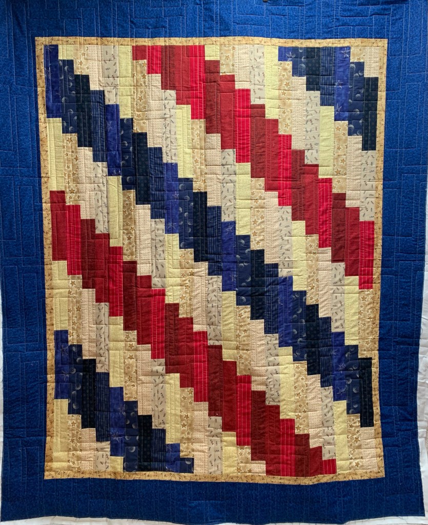 I really like both of the quilts and the quilting designs you chose. I used a boxy pattern for my shirts quilt – I made mine up, and yours is much neater!