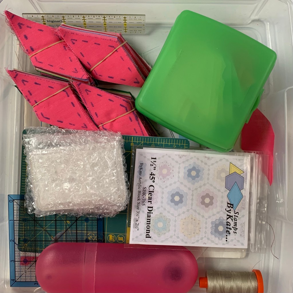 I have 36 Kaffe fat quarters that I’ve never cut into. I want to decide on a plan and get these chopped up before I go. I’m thinking of doing either hexagons or snowballs.