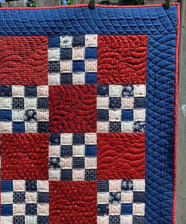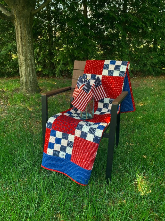 What a beautiful, patriotic quilt! You did a great job staging the pics too. Good job.