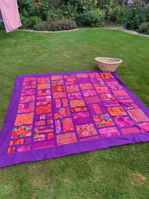 Blog reader, Elizabeth, from across the pond, sent me this photo showing what she did with her Kaffe fabric. It is just stunning! I’ve never been big into purple, but goodness, I am gobsmacked by this gorgeous top! I may end up doing something similar with mine.