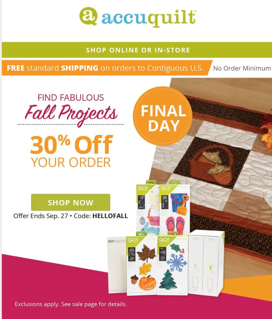 Also, today is the last day for a fantastic sale at Accuquilt .